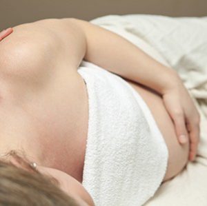 Pregnancy massage may help with the associated physiological, psychological and emotional changes experienced by the mother-to-be The client is massaged in the side lying position. Usually a light to moderate massage that targets areas of discomfort caused by the expanding body, eg lower back, hips neck and shoulders, calves and feet.